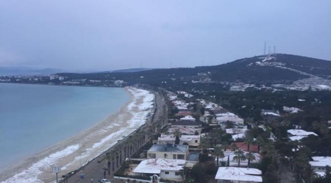 Türkiye genelindeki kartpostalları aratmayan kar manzaralarına bir yenisi de Çeşme'den eklendi. Yllardan bu yana kar tanelerinin düşmediği Ilıca Plajı'nın yaz aylarında binlerce kişinin sereserpe uzandığı sıcak, ince kumlarının üzerini beyaz örtüyle kaplandı. Plajdaki kar kalınlığı 45 santimetreyi buldu. Bazı Çeşmeliler, yazın denize girdikleri plajda, bu defa kartopu oynadı.