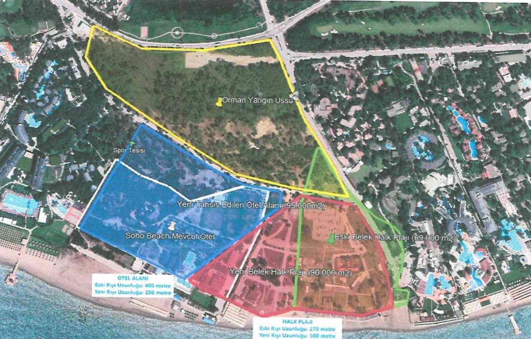 “Antalya Belek'te orman yangın üssü olan arazi Kültür ve Turizm Bakanlığı tarafından otel alanı olarak imara açıldı” iddiası gerçeği yansıtmamaktadır. Planın son haline bakıldığında yangın üssü olarak belirlenen alanın olduğu gibi korunduğu görülmektedir. Onaylı imar planlarında yangın üssü olarak planlanan alanda Kültür ve Turizm Bakanlığınca bir tasarrufta bulunulmamıştır. Yangın üssü olarak belirlenen alan, onaylı imar planındaki mevcut sınırlarıyla korunmaktadır. Belek Turizm Merkezi kapsamındaki Antalya ili, Serik ilçesi, Belek Mahallesinde bulunan yaklaşık 83 dönümlük orman vasıflı Hazine taşınmazı Kültür ve Turizm Bakanlığınca 1990 yılında kamping için Serik Belediyesine tahsis edilmiş, ancak belediyenin izinsiz yapılaşma ve üçüncü kişilere kiralama gibi uygulamaları nedeniyle 2013 yılında bu tahsis iptal edilmiştir. Bu işleme karşı açılan davalar da Kültür ve Turizm Bakanlığı lehine sonuçlanmıştır. Kültür ve Turizm Bakanlığınca son olarak 14/6/2022 tarihinde bu alana ilişkin imar planlarında revizyon yapılmış ve kamping konaklama tesisinin kıyı cephesi 400 metreden 280 metreye düşürülerek turizm tesis alanına dönüştürülmüş, bitişiğinde bulunan günübirlik tesisin (halk plajının) kıyı cephesi ise genişletilmiş ve 270 metreden 500 metreye çıkartılmıştır. Kamuoyunun bilgisine saygıyla sunulur.