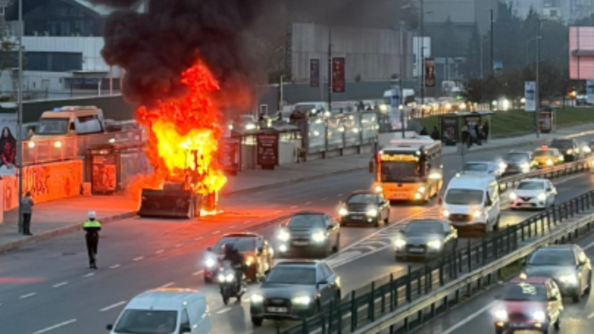 Cevizlibağ’da yol kenarında bulunan bir iş makinesi, sabah saatlerinde henüz bilinmeyen bir nedenle alev aldı.