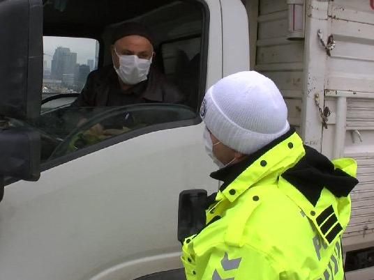 Ceza kesilen sürücünün trafik polisiyle ilginç diyaloğu kameraya yansıdı. Trafik polisinin kış lastiği olmayan sürücüye ceza keseceğini söylemesinin üzerine sürücü "Memur bey, bana bugün müsaade edin. Bugün vallahi kış lastiğini taktıracağım. Daha parayı yeni biriktirdim. Param yoktu benim o yüzden taktıramadım." dedi. (DHA)