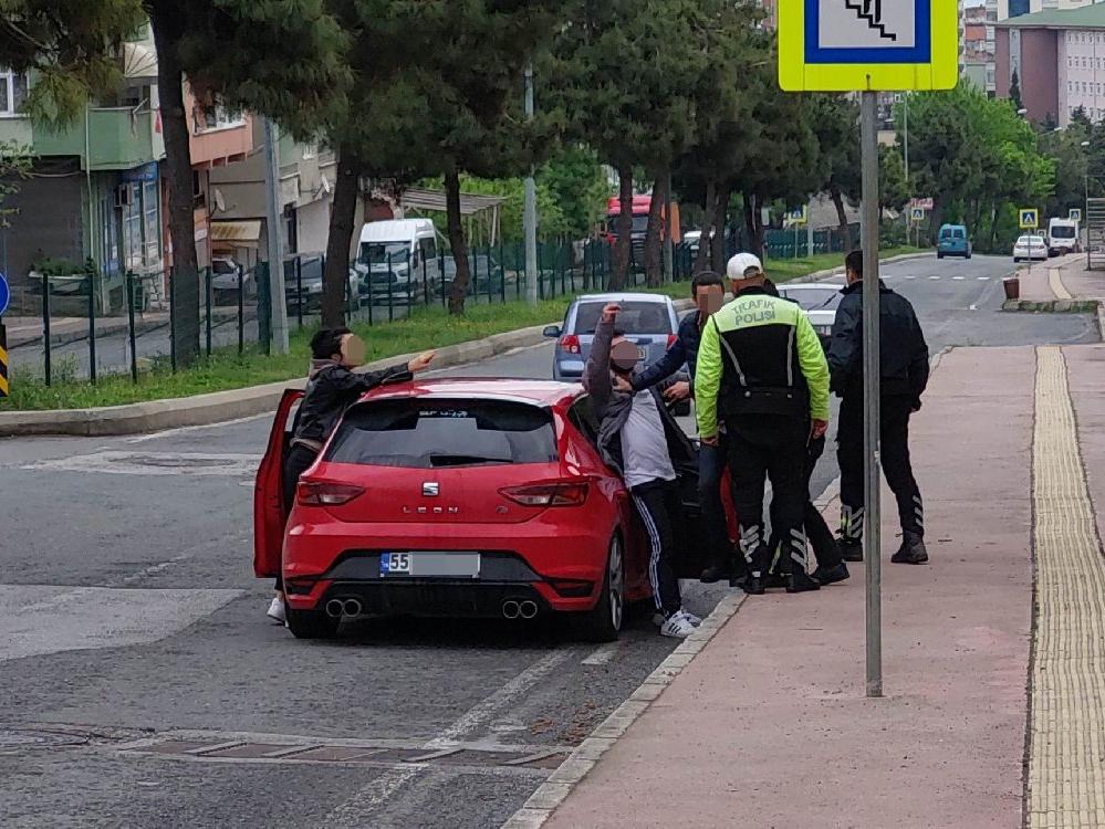 Trafik polisleri, aracı bağlamaları gerekirken içinde bulunan sürücünün eşi ve çocuklarının mağdur olmaması için aracı bağlamayıp, ehliyeti olan sürücünün eşine teslim etti. Bu sırada ceza yiyerek ehliyetine el konulan sürücü ile trafik polisleri arasında arbede yaşandı.