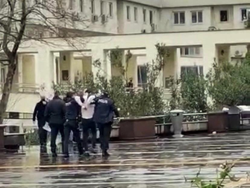O anlar ise cep telefonu kamerasıyla kaydedildi. Görüntülere, adliyeden kaçmak istediği esnada polis ekiplerince yakalanan şahsın etkisiz hale getirildiği anlar yansıdı. İHA