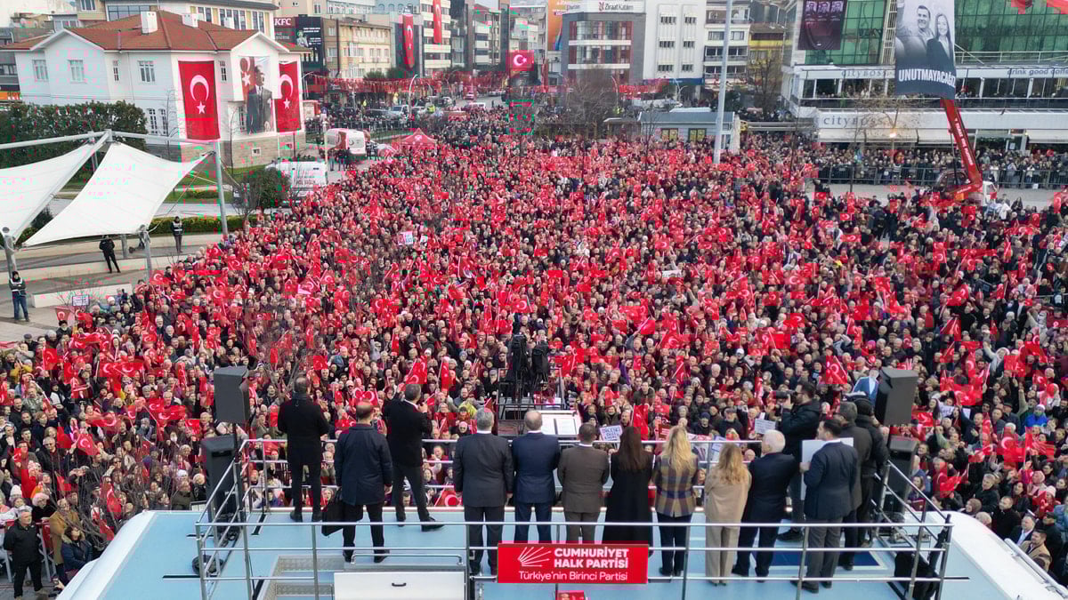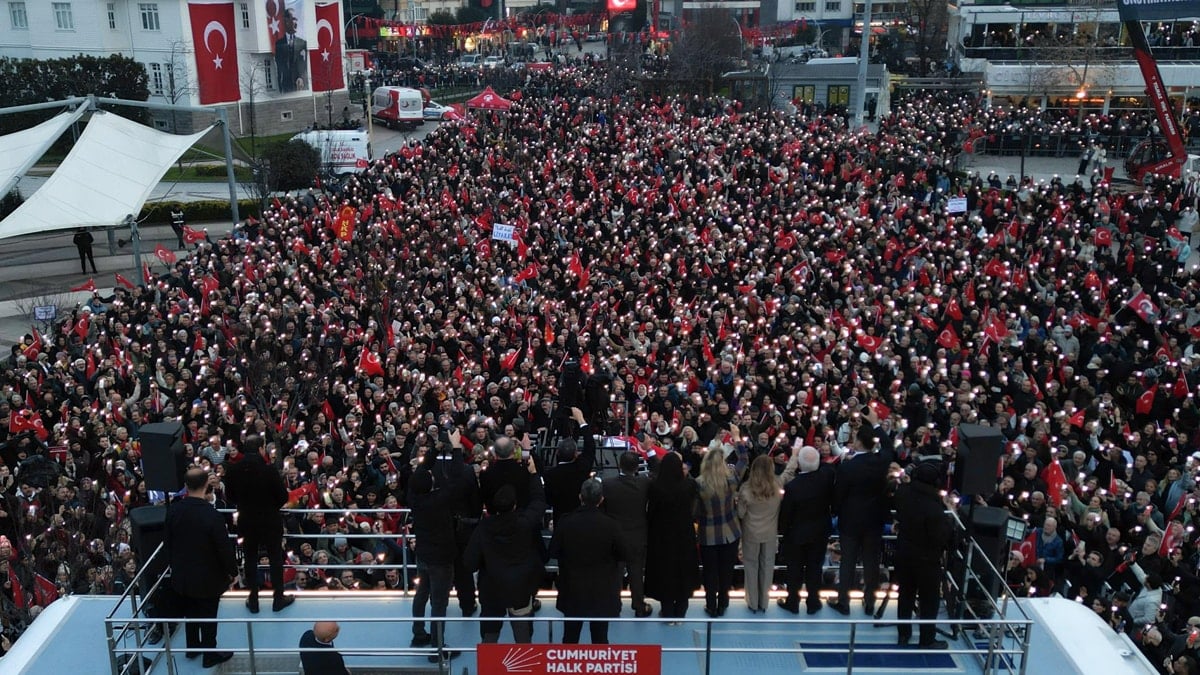 - 19 Mart bir sivil darbeydi. O günden bugüne 310 gün geçti. 50 gün sonra tam bir yıl olacak arkadaşlarımız cezaevlerinde tutuluyorlar. Erdoğan'a sesleniyorum. Buradan ilan ediyorum ki arkadaşlarımız suçsuzdur. Söyleyen herkes iftiracı söylenen her şey iftiradan ibarettir. Ekrem Başkana yolsuz dediler, PKK'lı dediler, casus dediler. Hepsinin altı boş çıktı. Şimdi çıktılar bir uçak yalanı attılar. Utanmadan Sabah gazetesi güya köşe yazarı yalanlarıyla övünen, çıktılar dediler ki uçakta şu oldu, bu oldu. Ama uçağın sahibi AK Partili çıktı, uçağı işleten AK Partili çıktı, verdikleri isim AK Partili çıktı. Ortağı AK Parti'nin bir önceki il başkanı çıktı. İhaleyi veren İstanbul Büyükşehir değil, bakanlık çıktı. Paranın verildiği yer İBB değil, İstanbul Valiliği çıktı. Uçakta gezen tozanlar AK Partili çıktı. Ama geçen hafta Erdoğan çıktı, dedi ki ‘milletin parasıyla gününü gün eyleyenler.’ Erdoğan'a sesleniyorum; Cumhuriyet Halk Partisi'nde milletin kör kuruşuna tenezzül eden yok. Cumhuriyet Halk Partisi'nde kreş yaptır, dozer al, yurt yaptır dışında iş adamının parasına el süren yok. Sadece hizmete yönlendiren var. Ama senin 4 bakanın ellerinde ayakkabı kutularıyla çıkan paraları önce FETÖ koydu deyip sonra faiziyle geri istediler. O ayakkabı kutularından çıkanların hesabını vermediğin gibi o gün bile devletten çıkmadıktan sonra rüşvet denmez diye onu bile makul göstermeye çalışmıştın. Erdoğan'a söylüyorum, bu meydanlar boşa konuşmaz. Şu meydan geçen gün o kırılası ellerin saldırdığı ay yıldızlı al bayraklarla dolu şu meydan. Bu meydan boşa konuşmaz Erdoğan. Bu meydanlar bir şey söylüyor. Bir devri kapatıyoruz, bir devri açıyoruz. Erdoğan'ın evlatlarının, bakanlarının, bakan evlatlarının devri bitiyor. Vatan evlatlarının devri başlıyor, vatan evlatlarının.