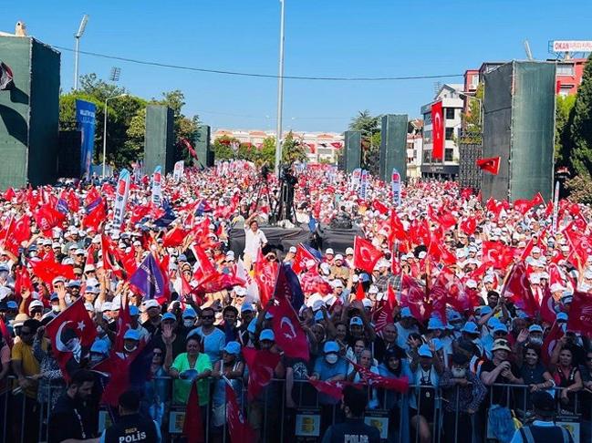 Eşi Selvi Kılıçdaroğlu ile sahneye çıkan CHP lideri Kılıçdaroğlu, "Motorları maviliklere süreceğiz. O güzel Türkiye'yi yeniden inşa edeceğiz. Motorların maviliklere sürülmesi kadar güzel bir şey yok. Bu güzelliği beraber inşa edeceğiz. Birlikte inşa edeceğiz. Adalet, hak için inşa edeceğiz. Emin olun gücümüz birleştiğinde önümüzde hiçbir güç kalmayacak" diyerek konuşmasını bitirdi.