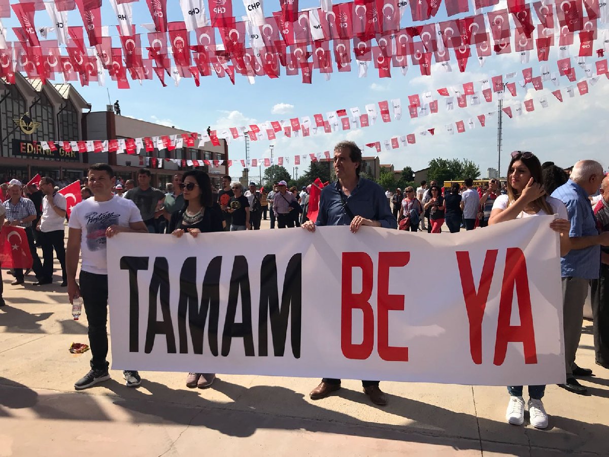 İnce Edirne'de 'TAMAM be ya' pankartı ile karşılandı.