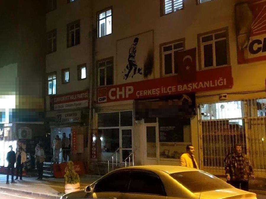 Çerkeş ilçesinde dün akşam saatlerinde bir binanın birinci katında bulunan CHP İlçe Başkanlığına yanıcı madde atıldığı ihbarı üzerine olay yerine polis ve itfaiye ekipleri sevk edilmişti. Şüpheli polis ekiplerince kısa sürede yakalanmıştı. (AA)