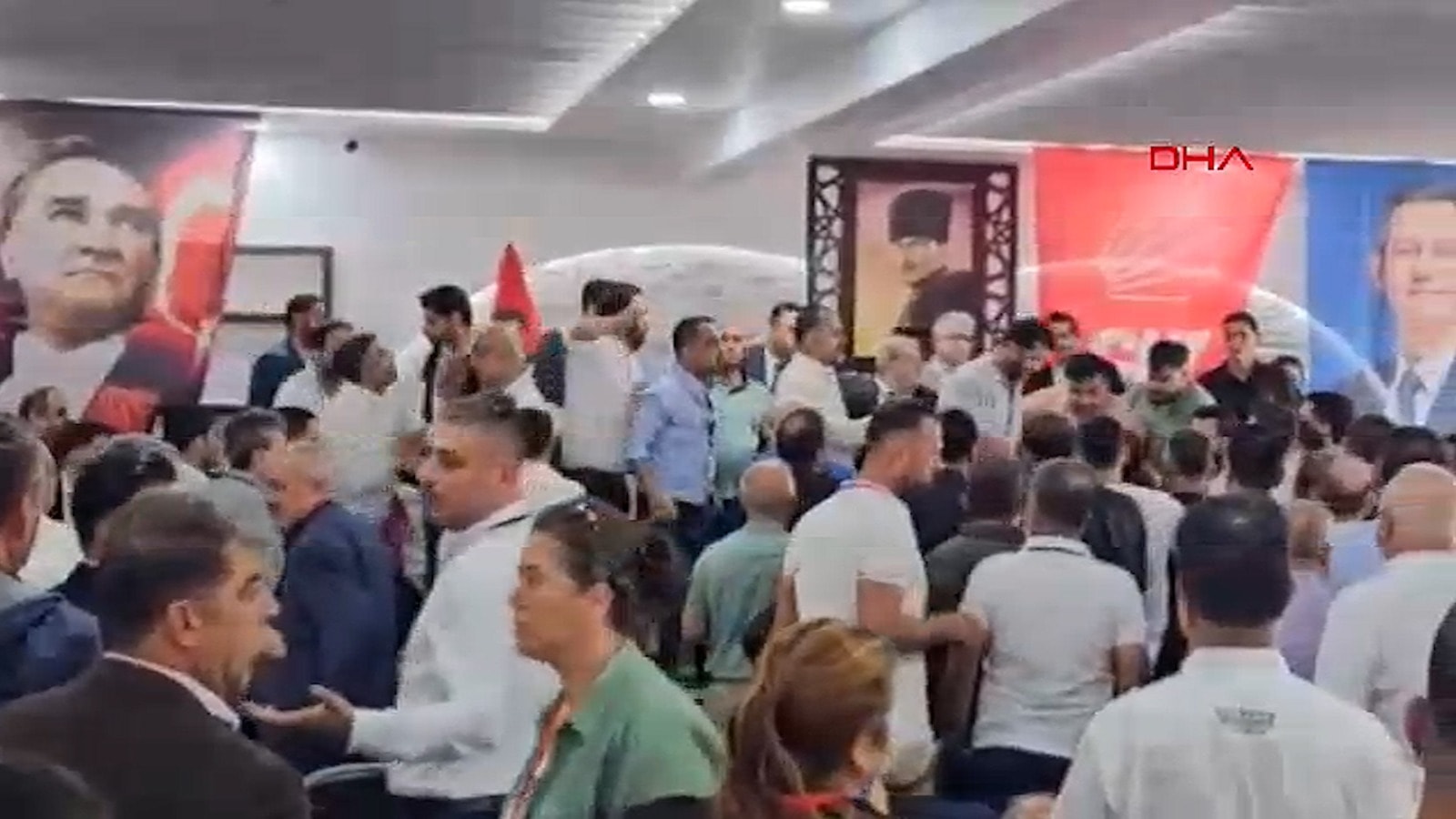 Hatay’ın Samandağ ilçesinde CHP İlçe Başkanlığı’nın 7’nci Olağan Kongresi sırasında partililer arasında kavga çıktı.