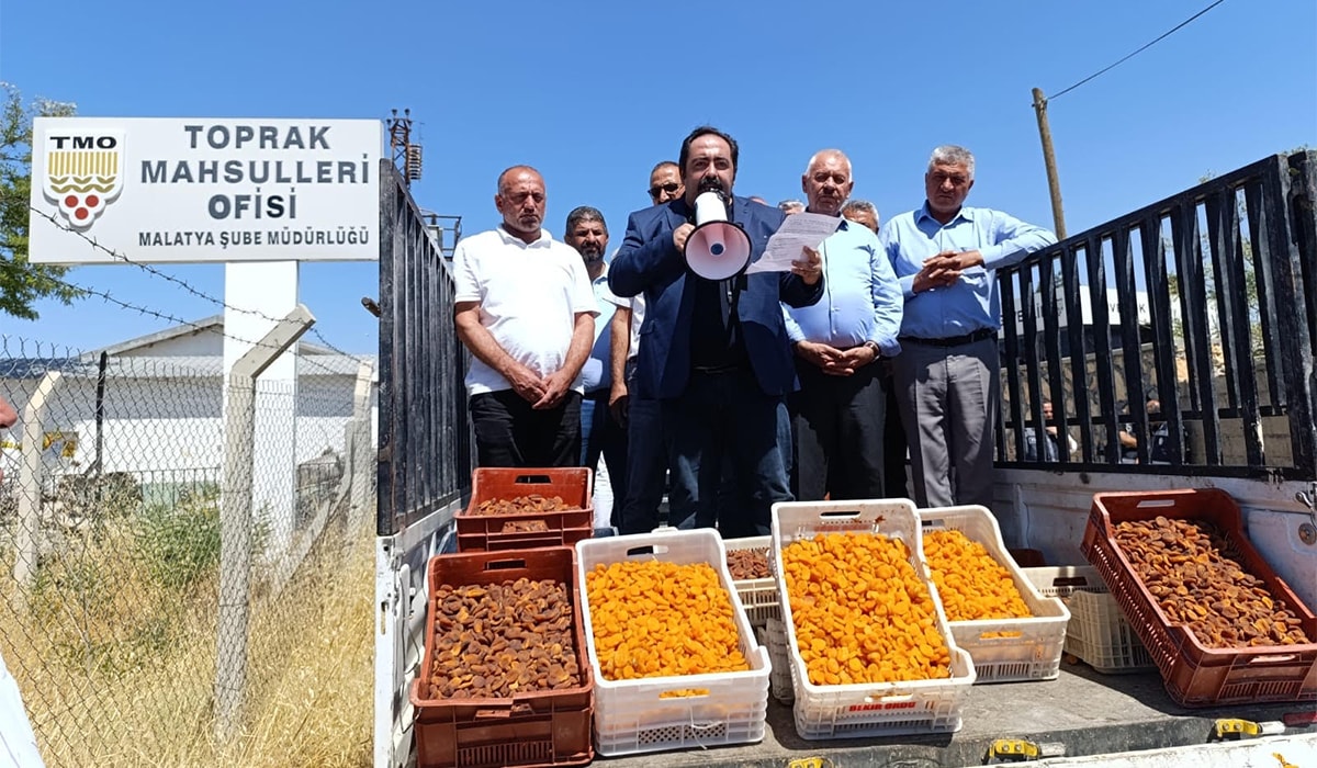 “Ancak bu yıl Toprak Mahsulleri Ofisi’nin kayısı almasını için tüm şartlar oluşmuştur. Bugün TMO’ya, TMO’nun genel müdürüne değil buradan Tarım ve Orman Bakanlığına sesleniyoruz; Toprak Mahsulleri Ofisinin kayısı için taban fiyat belirlemesi bu şehrin ortak talebidir.