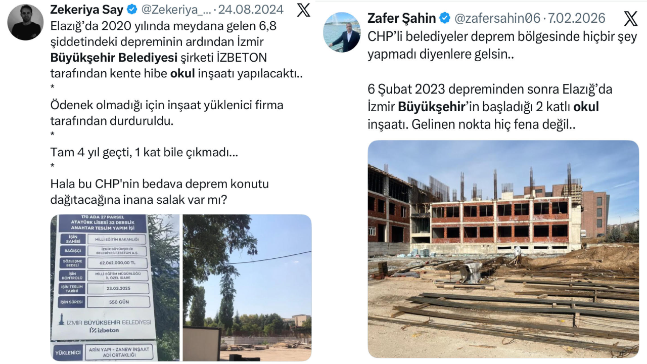 Elazığ'da meydana gelen depremin ardından kentin eğitim altyapısını güçlendirmek amacıyla İzmir Büyükşehir Belediyesi tarafından yapımına başlanan 32 derslikli Atatürk Lisesi’nin inşaatına ilişkin ortaya atılan “atıl bırakıldı” iddiaları gerçeği yansıtmadı. İktidara yakın bazı gazeteciler ve basın organlarında yer alan haberlerin aksine, okul inşaatında çalışmaların sürdüğü görüldü. Okulun ikmal yapım ihalesi 20 Şubat 2025 tarihinde gerçekleştirilmiş 141 milyon TL bedelle ihale Bulut Park İnşaat – Özallar İnşaat ortaklığı kazanmıştı.