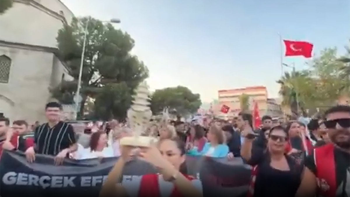 Aydın'da düzenlenen "Millet İradesine Sahip Çıkıyor" mitingi öncesinde CHP Gençlik Kolları, kortej yürüyüşü gerçekleştirdi.