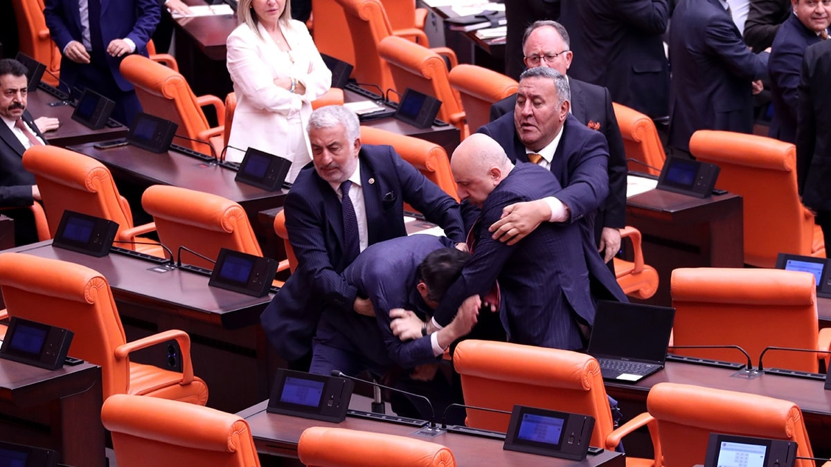 - Aslında böyle görüntülerin Meclis'te olmaması gerekir ama kürsüde konuşan hatip AKP sıralarına yönelik konuşmasını sürdürürken böyle bir olayın olabileceğini tahmin edebilir noktada değildi. Konuşmanın son bölümünde iş gerginleşti. Meclis'e yakışmadı, biz de ayırma görevimizi yerine getirdik.