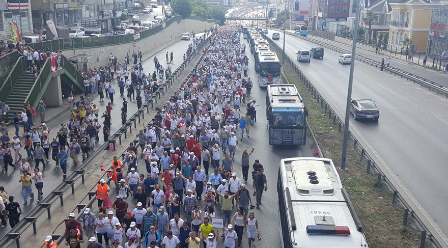 CHP Lideri Kemal Kılıçdaroğlu'nun Tuzla'dan Pendik istikametine yürüyüşü sırasında bir grup vatandaş pankart açarak tepki gösterdi.