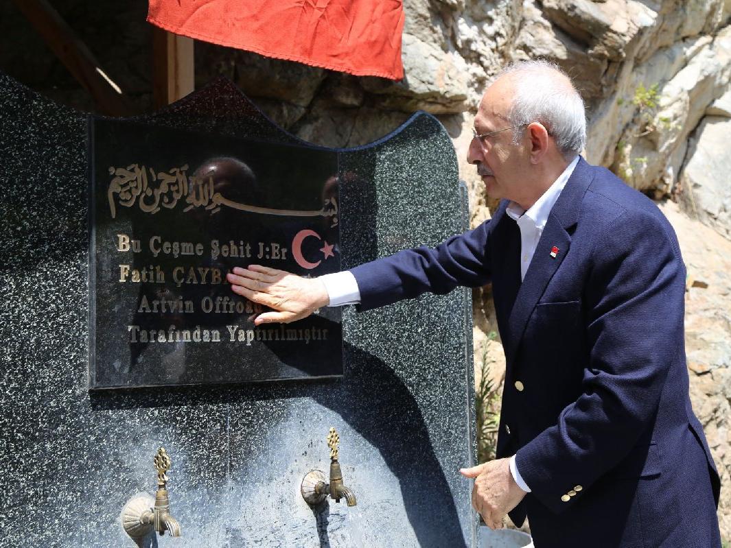 Soğuksu mevkiindeki saldırı sonucu hayatını kaybeden Şehit Jandarma Er Fatih Çaybaşı için Off-Road Kulübü tarafından yapılan çeşmeden su içen Kılıçdaroğlu, şehit Çaybaşı’nın isminin yer aldığı yazıyı eliyle yıkayarak temizledi. Bölgede bir süre inceleme yapan Kılıçdaroğlu, daha sonra Havva Civelek isimli yaylacı kadın ile sohbet etti. Yaylacı Civelek, Kılıçdaroğlu’nu görünce, “Seni hep televizyonlarda görüyordum. İlk defa yakından görüyorum. Aynıymışsın” dedi. Kılıçdaroğlu daha sonra belediye ziyareti için Şavşat’a hareket etti.