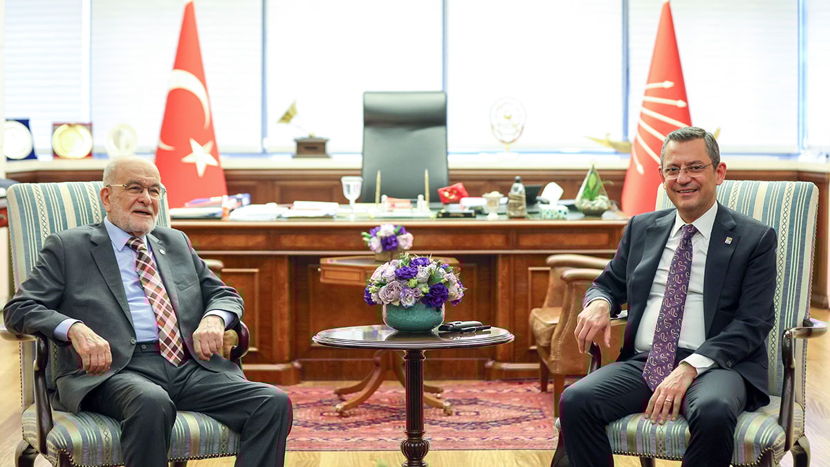 CHP Genel Başkanı Özgür Özel, Saadet Partisi Genel Başkanı Temel Karamollaoğlu ile CHP Genel Merkezi'ndeki makamında bir araya geldi.