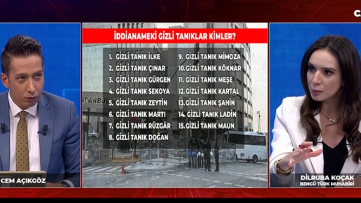 İddianamedeki gizli tanık iddialarına ilişkin Bengü Türk'ten Dilruba Koçak'ın haberine göre, Hala soruşturması devam eden diğer olaylarla alakalı olduğu için bu 5 gizli tanığın beyanına iddianamede yer verilmediği belirtildi.