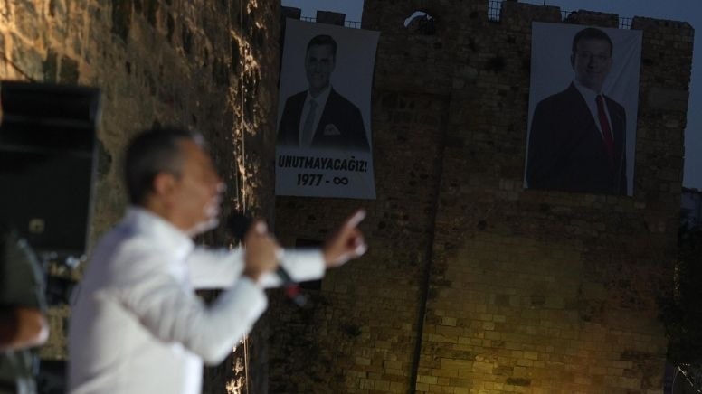 Özgür Özel, surlara asılan Ferdi Zeyrek ve Ekrem İmamoğlu pankartlarını göstererek, "Size söz veriyorum, yapılacak ilk seçimlerden sonra CHP iktidar olacak, bir CHP’li cumhurbaşkanı olacak onun adı Ekrem İmamoğlu olacak ve size sahip çıkacak" dedi.