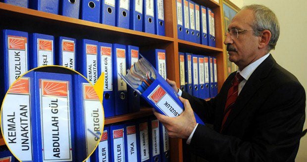 2- Fotoğraflardaki tahrifat ortaya çıkarıldığında, Kılıçdaroğlu'nun önünde durduğu dosyaların birinin üzerinde Cumhurbaşkanı Abdullah Gül'ün isminin de yer aldığının ortaya çıkarılacağı bilinmiyor muydu? Bu bilerek, Sayın Cumhurbaşkanı'nın adının yolsuzlukla birlikte anılmasını sağlamak için mi yapıldı?"
