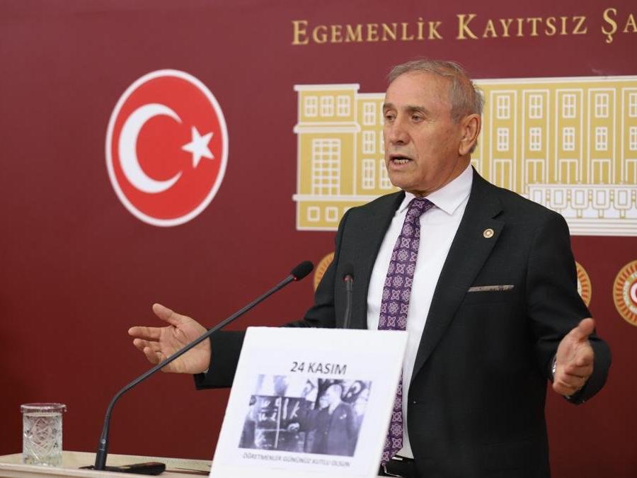 Çünkü öğretmen ders verir! Size de günü geldiğinde dersinizi verecek. Sayın Bahçeli; bu açıkladığınız konularda samimiyseniz, o halde iki kanun teklimize ve 24 Kasım Perşembe günü öğretmen sorunlarının araştırılması önergemize oy verin, sorunları birlikte çözelim."