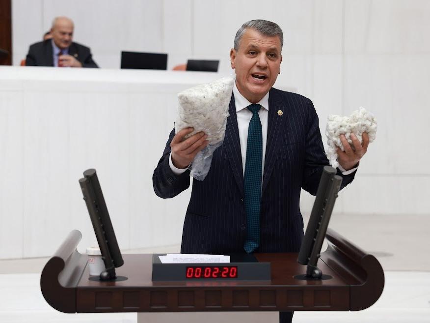 CHP Adana Milletvekili Ayhan Barut, Meclis'te pamukla kürsüye çıkıp çiftçilerin yaşadığı sorunlara acil çözüm bulunmasını istedi. Barut, "Pamuk üreticileri maliyetin altına düşen fiyatlar nedeniyle bir daha ekemeyecek. Derhal pamukta derinleşen krize çözüm bulunsun" dedi.
