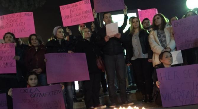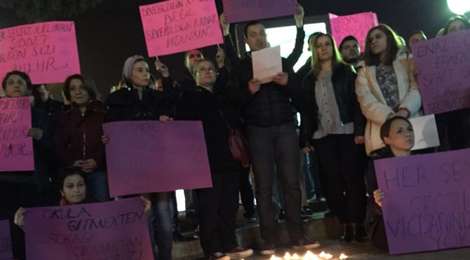 Cumhuriyet Meydanı`nda bir araya gelen CHP Bornova İlçe Gençlik Kolları üyesi bir grup geçtiğimiz günlerde Kayseri`de öğretmeninin tecavüzüne uğradıktan sonra intihar ettiği belirtilen liseli Cansel Buse K. için oturma eylemi yaptı.