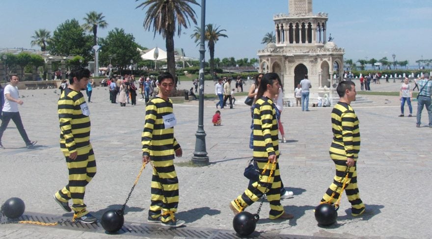 Üzerlerindeki hapishane tek tip kıyafatleri ve ayaklarında prangalarla katılan Dalton kardeşler Joe, Willam, Jack ve Avarel'in yanında açıklama yapan CHP Konak İlçe Başkanı Mehmet Şakir Başak, AK Parti iktidarının teröre bulaşmış milletvekillerinin dokunulmazlığını başka hiçbir partiye ihtiyaç duymadan kaldırabilecekken kaldırmadığını söyledi. Başak şöyle dedi: