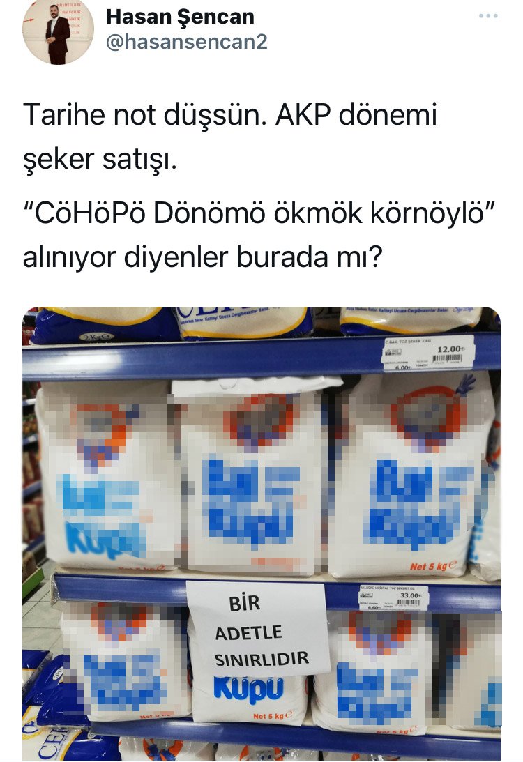 Şencan sıvı yağ reyonunda çekilen bir başka fotoğrafı etiketlediği mesajında ise, “5 litre ayçiçeği yağı 10 Dolar’dan daha az. Amerika’da kaç para biliyor musunuz?” sorusuyla yağ fiyatlarına gelen zammı eleştirdi.