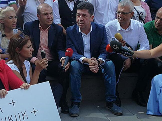 CHP'li Tüzün açıklamanın ardından kurultay talebiyle parti önünde eylem yapan grupla bir süre oturduktan sonra buradan ayrıldı. DHA