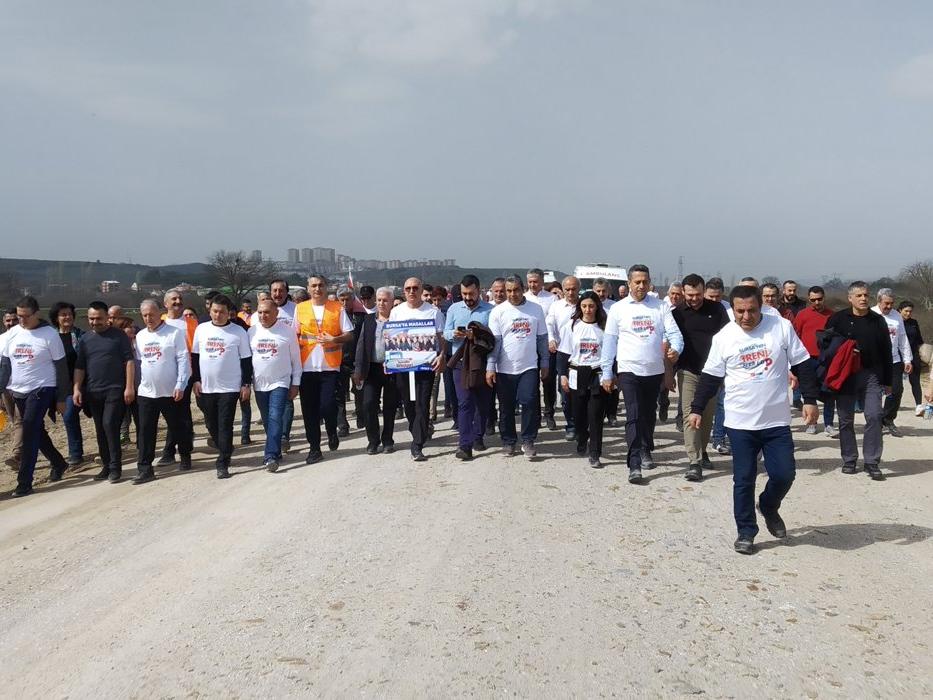CHP'liler 10 yılda tamamlanmayan Bursa Yüksek Hızlı Tren hattını protesto etmek için TCDD Balad Köprü üzerinden 23 kilometre boyunca yürüdü. Kalabalık grup, yürüyüş sırasında, 'Kara tren gecikir belki hiç gelmez' türküsünü söyledi.