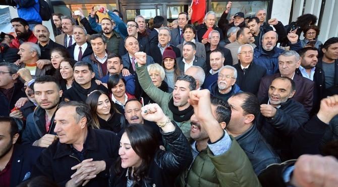 İZMİR'de, Büyükşehir Belediyesi hizmet binası önünde toplanan yüzlerce CHP'li, anayasa değişikliğine karşı, üzerinde 'Hayır' yazan dövizlerle eylem yaptı. CHP İzmir İl Başkanı Asuman Ali Güven, "Meclisten 'Evet' çıksa bile bizler sandıkta 'Hayır' diyeceğiz" dedi.