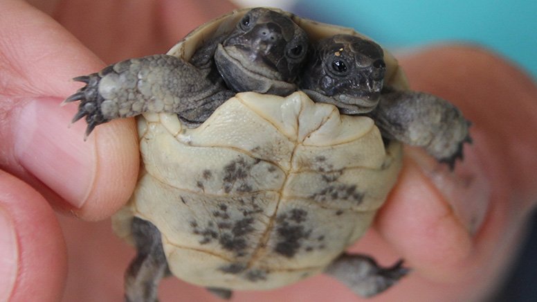 Serik ilçesine bağlı Tekker Mahallesi'nin imamı tarafından yedi gün önce arazide bulunan çift başlı kaplumbağa yavrusu, tedavi ve bakımı için veteriner Ercan Erkan'a götürüldü. Burada durumu kontrol edilen yavru kaplumbağanın herhangi bir sorunu olmadığı belirlendi.