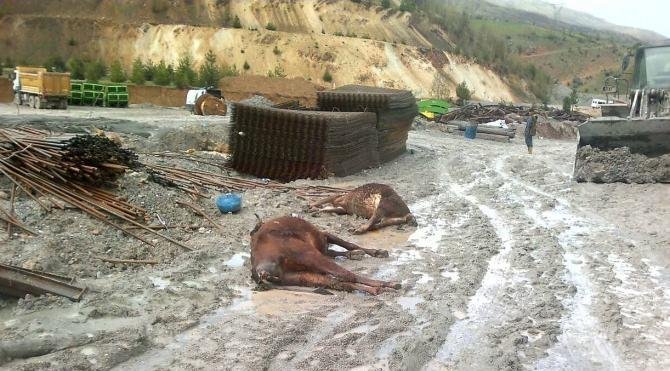 İlçeye bağlı Şarköy Köyünde yaşayan evli 5 çocuk babası Muharrem Özgün, dün öğlenden sonra köy yakınlarında otlattığı 8 büyükbaş hayvanı ile dönerken, ikisinin elektrik akımına kapılarak telef olduğunu söyledi. Özgün, 'İneklerimi otlattıktan sonra köye dönüyordum. Geminbeli Tüneli inşaatı için kurulan şantiye yanından köy yoluna geçerken ineklerim akıma kapıldı. Buradaki firmanın yol altından çektiği elektrik kablosu, üstünden iş makineleri geçmesi nedeni ile zarar görmüş ve akımı toprağa vermiş. Bu edenle iki ineğim olay yerinde telef oldu. Bir ineğimin de doğumu yaklaşmıştı ama ölü doğum yaptı' dedi. Özgün, durumu jandarmaya ileterek şikayetçi oldu.
