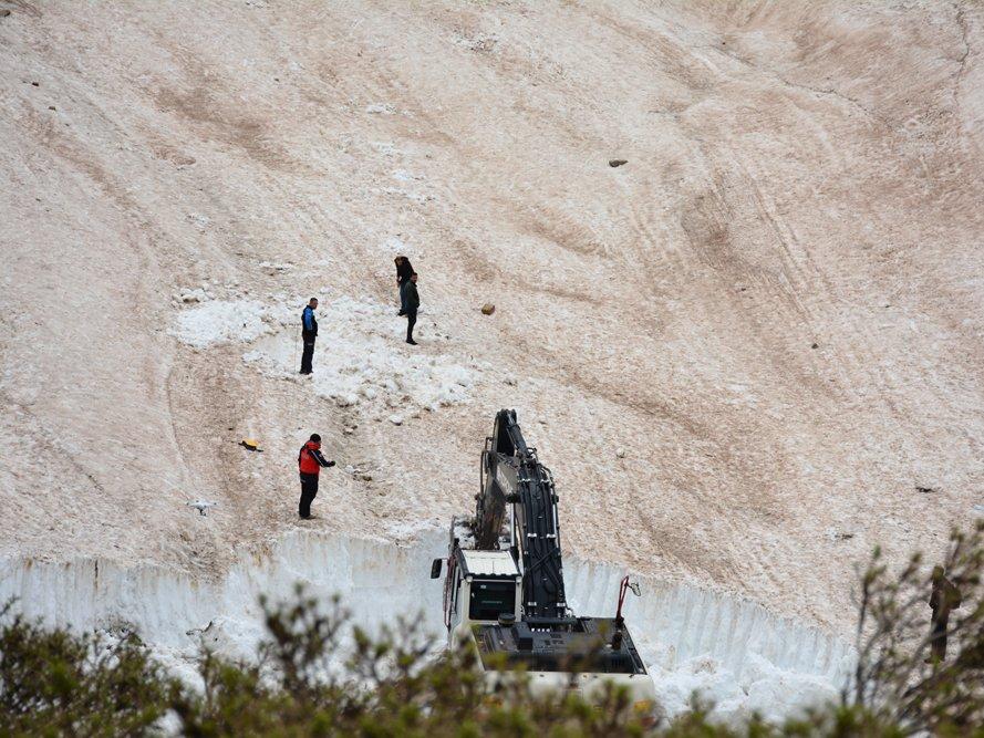 Zorlu arazi şartlarında çok sayıda kişinin katıldığı arama çalışmalarında bir iş makinesi de kullanılıyor. Şemdinli Belediye Başkanı Tahir Saklı da arama çalışmalarının sürdüğü bölgeye gelerek çalışmaları izledi. (DHA)