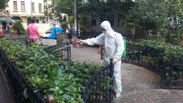 Beyoğlu Belediyesi Veterinerlik İşleri Müdürlüğü, Cihangir bölgesindeki ağaçlara ve bitki örtüsüne zarar veren zehirli tırtıllara karşı ilaçlama çalışması başlattı.