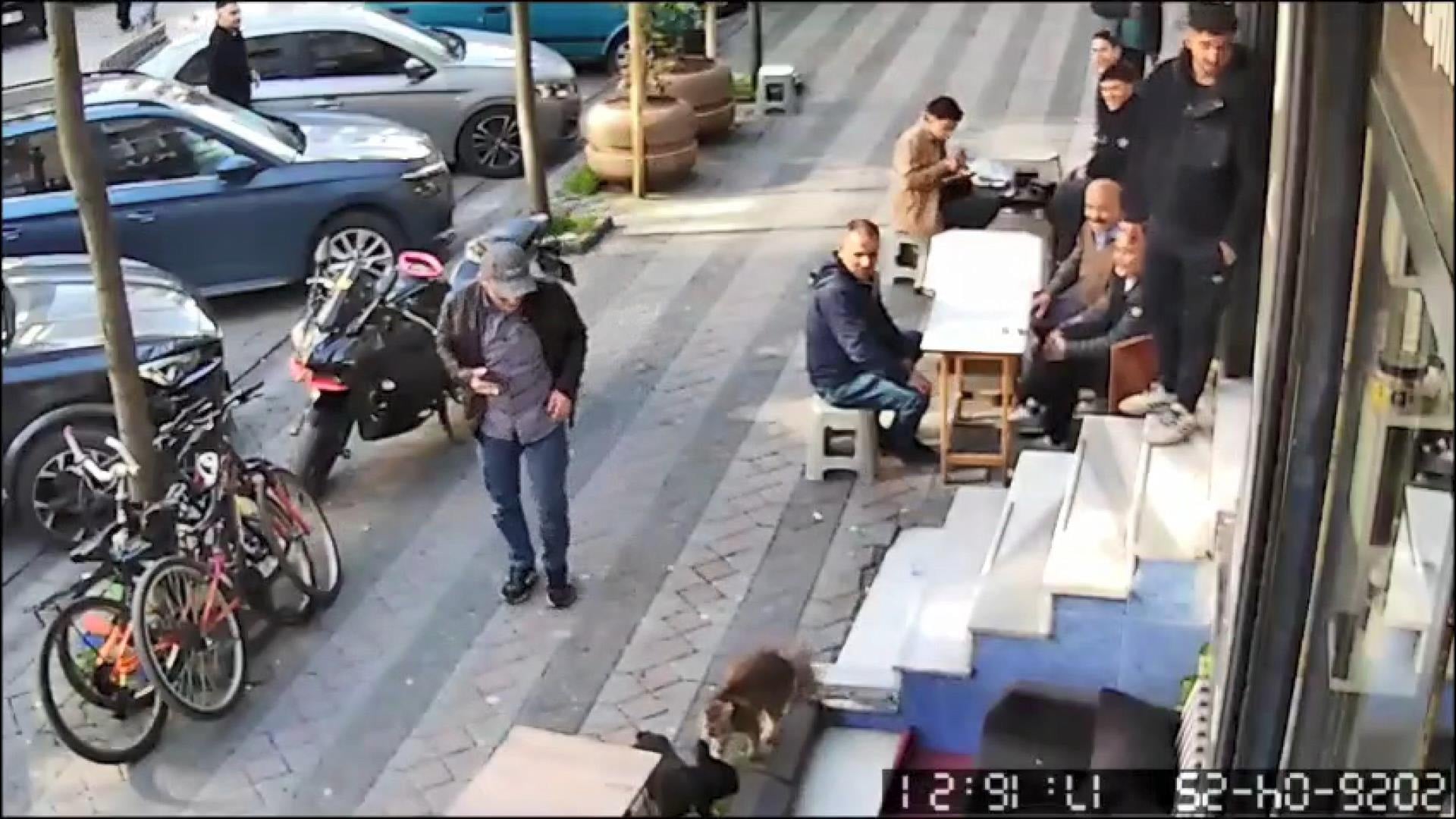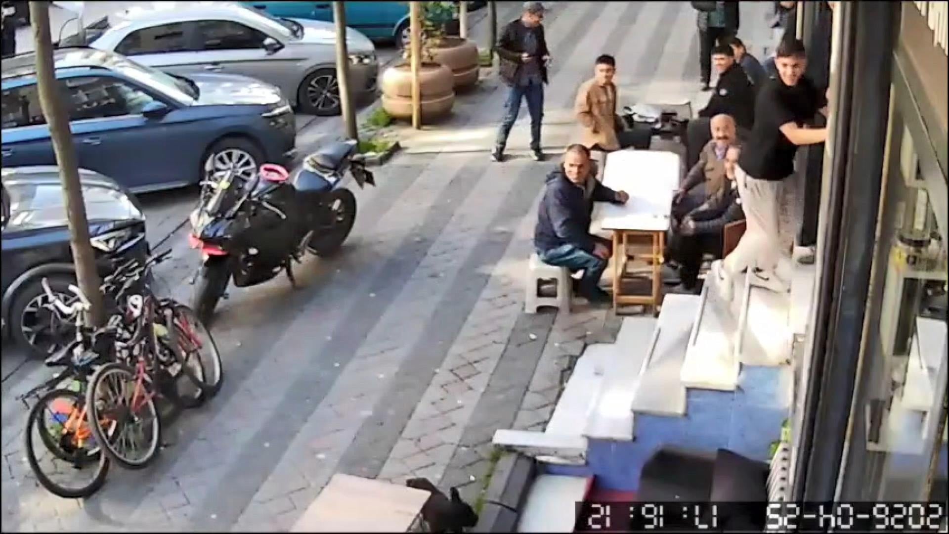 Olay sırasında dışarıda oturan vatandaşların yaşananları izlediği anlar da kameralar tarafından kaydedildi.