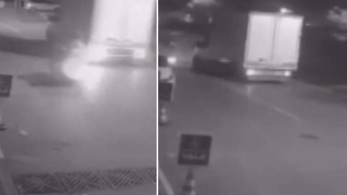 Çarpma anında motosikletin üzerinden atlayan kurye kazayı yara almadan atlattı. Kamyonet sürücüsünün motokuryeye çarptıktan sonra olay yerinden uzaklaştığı anlar bir iş yerinin güvenlik kamerasına saniye saniye yansıdı.