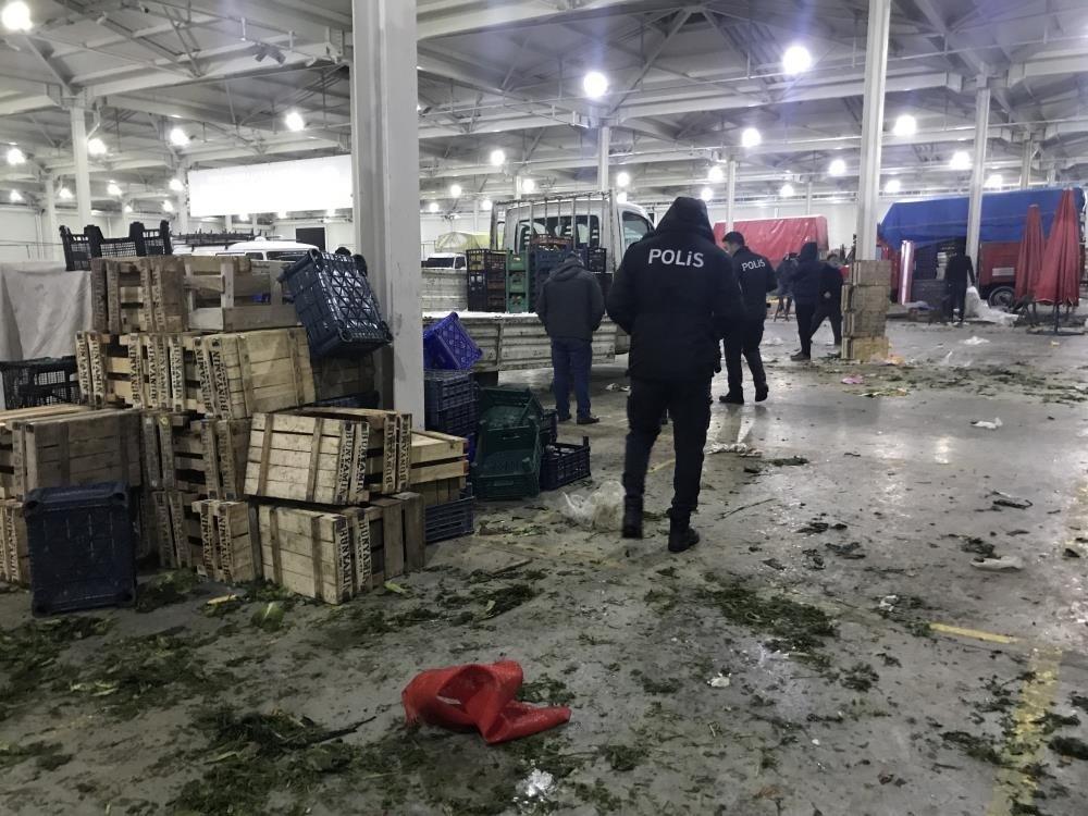 Hüseyin B.’nin halden malzemeleri satın aldığı kişinin yan tezgahta bulunan oğlu da Hüseyin B.’ye gelerek babasına paranın bin lirasını ödemediğini söylediği. Hüseyin B.’nin parayı ödediğini söylemesi üzerine iki grup arasında bıçak ve sopalı kavga çıktı. Şevket M.’nin pazar yerine arkadaşlarını çağırmasıyla kavga daha da büyüdü. Kavgada Yaşar Bardakcı (44) bıçakla, kardeşi Muhammet Bardakcı (34) sopayla, karşı gruptan İsmail Kurul (19) ile kavgayı ayırmaya çalışan Rahim Özkan (42) da bıçaklanarak yaralandı. İhbar üzerine olay yerine polis ve sağlık ekipleri sevk edildi.