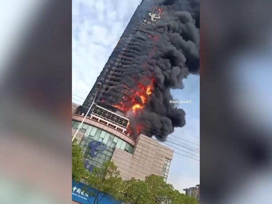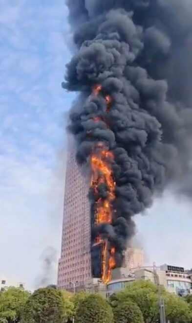 Çin Merkez Televizyonu, yaptığı yayında, "Binadan kalın dumanlar çıkıyor ve birkaç düzine kat vahşice yanıyor."
