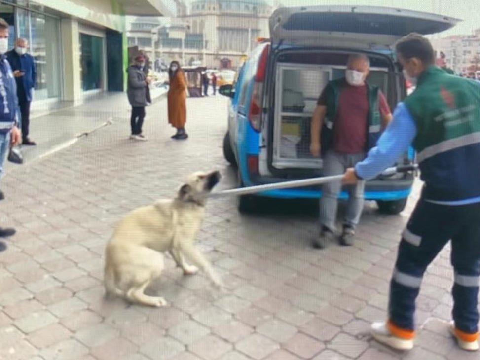 Uzaklaşan köpek, Taksim Meydanı'nda Beyoğlu Belediyesi ekiplerince yakalanarak veteriner müdürlüğüne götürüldü. DHA