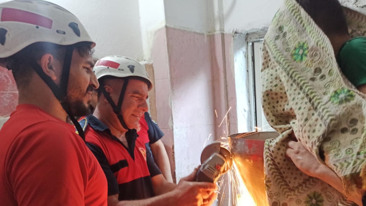 Şanlıurfa'da bir fırında çırak olarak çalışan 13 yaşındaki Halil Şehitoğlu, hamur yoğurma makinesine elini sıkıştırdı. İtfaiye ekipleri makineyi keserek çocuğun elini kurtardı.