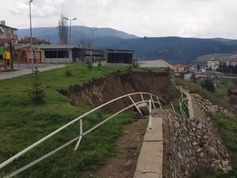 Kentte aralıklarla etkili olan yağmur nedeniyle 5000 Evler Cumhuriyet Mahallesi 40 Nolu Sokak'ta bulunan çocuk parkında, heyelan meydana geldi.