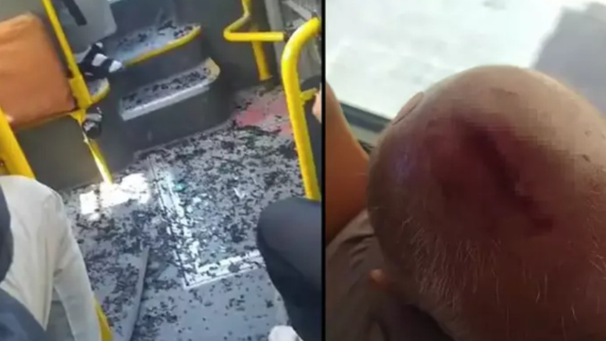 Kırılan cam parçaları yolculardan birinin üzerine düştü.