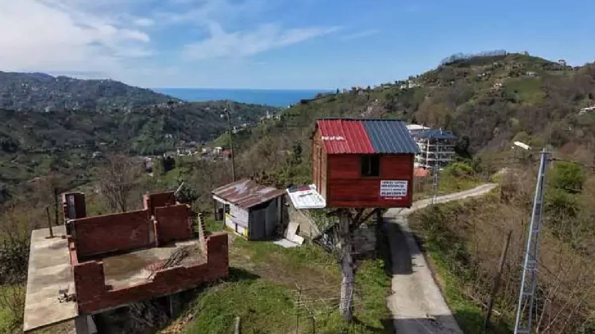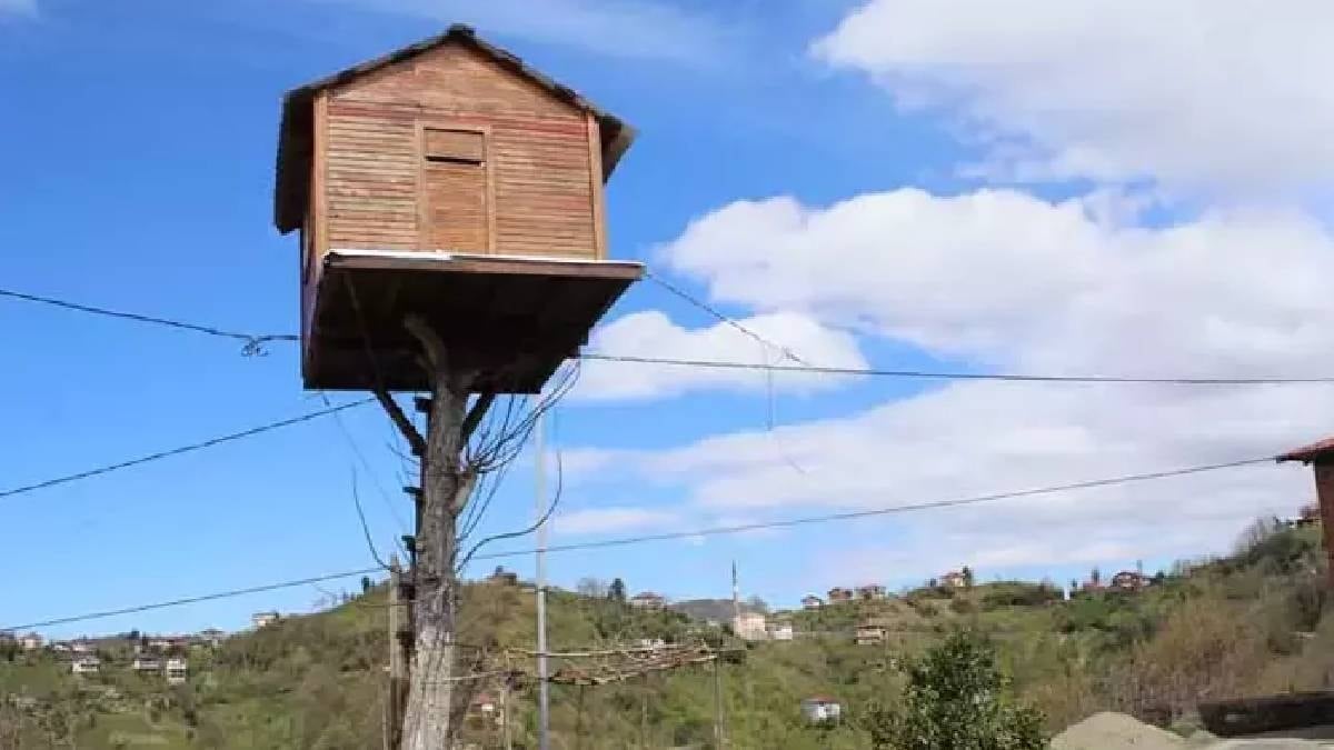 Doğu Karadeniz'in zorlu coğrafyasında geleneksel mimari dışında inşa edilen yapılar dikkat çekmeye devam ediyor. Rizeli Resul Bilen, 10 yaşından bu yana kurduğu ağaç ev hayalini, 25 yıl sonra hayata geçirdi. Dedesinden miras kalan ve kurumaya başlayan bir ceviz ağacını temel alan Bilen, elektrik tellerinin hizasını dikkate alarak yerden 7 metre yükseklikte ahşap bir oda ve balkon inşa etti.