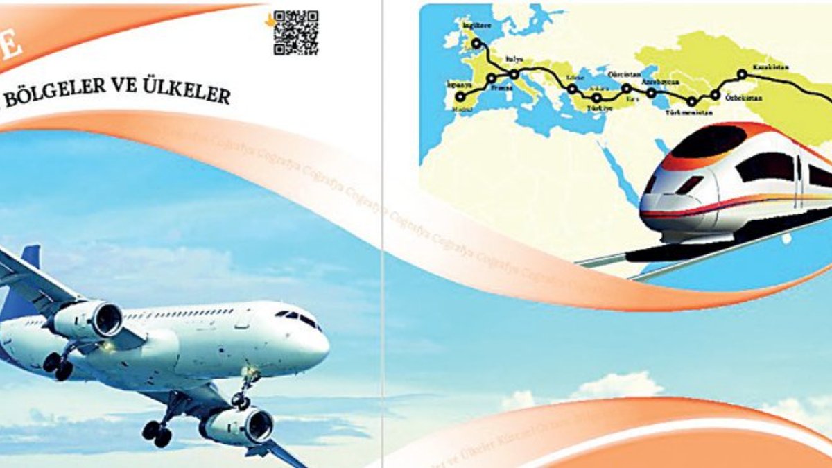 Coğrafya kitabı 218. sayfa: İstanbul Havalimanı’nın 2018’de yapıldığı vurgulanıp, iç hatların 9.8 milyon, dış hatların 30 milyon yolcuya ulaştığı anlatılıyor. 76.5 milyon metrekarelik alanda dünyanın en büyük havalimanı olduğu sıralanıp, zemininin deprem dayanıklılığına değinilmiyor. Hızlı tren de bu bölüme eklenmiş.