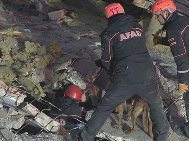 Kurtarma çalışmaları devam ediyor.  Çalışmalara hassas burunlu arama kurtarma köpekleri de katılıyor.