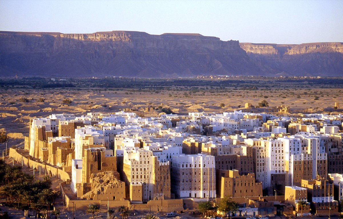 UNESCO'nun Dünya Kültür Mirası listesinde yer alan Şibam'da tüm yapılar kerpiçten yapılmış ve bunlardan 500 kadarı yüksekliği 5 ilâ 11 kat arasında değişen çok katlı evler.