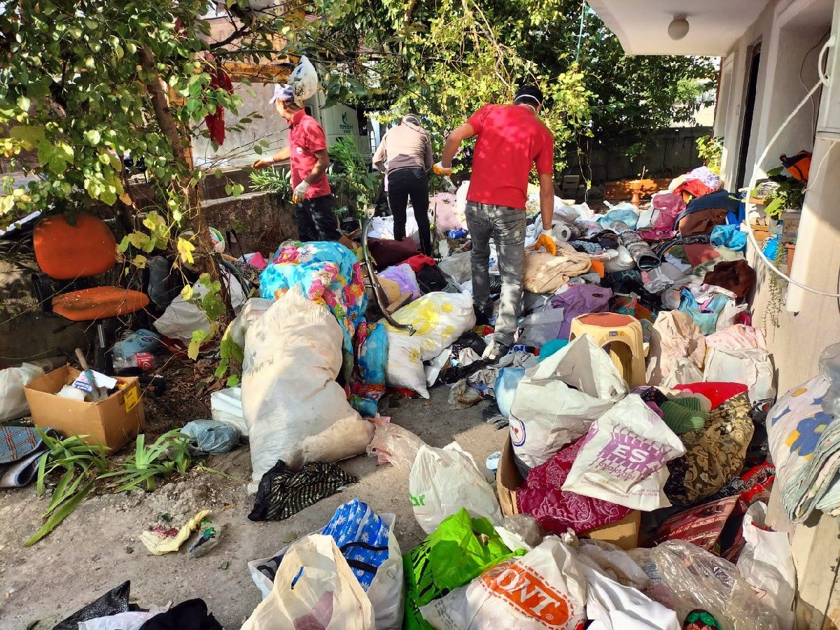 Olay yerine gelen polis, zabıta ve belediye temizlik ekipleri, evin içindeki çöp yığınlarıyla karşılaştı. Evin içinde çöplerin bulunduğu bölgeye adım atmak neredeyse imkansız hale gelmişti. Ekipler, çöpleri dikkatlice temizleyerek 2 kamyon dolusu çöpü tahliye etti. Ev temizlendikten sonra sahibine teslim edildi. (AA)