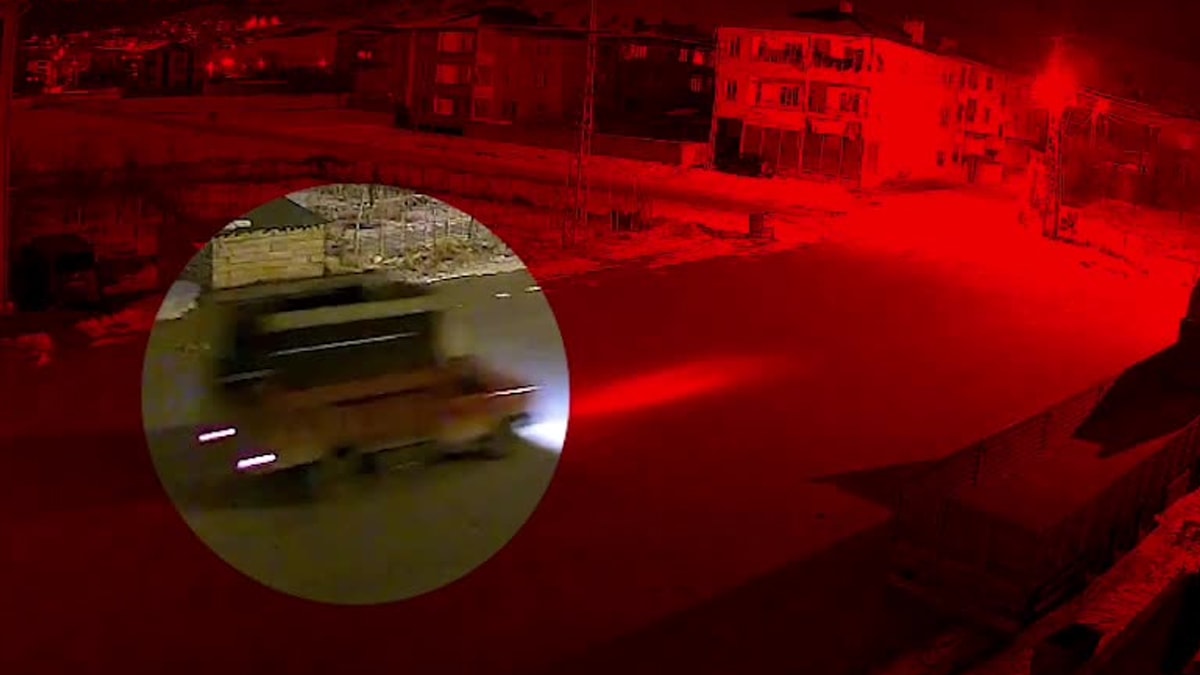 Konteynerlerin, kırmızı renkli kamyonla çalındığı anlar, çevredeki güvenlik kameralarına yansımıştı.