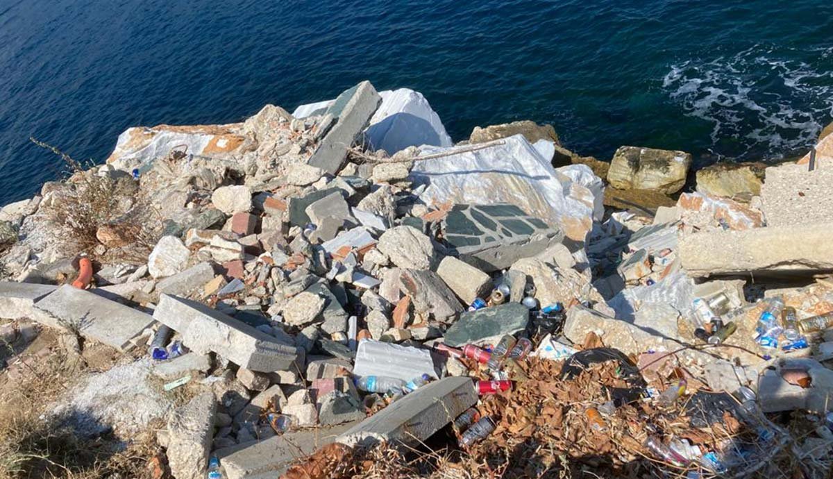 Bir diğer çevre duyarsızlığı da Balıkesir’in Marmara Adalar İlçesi Saraylar Mahallesi’nde yaşanıyor. Mermer ocaklarının molozları, berteraf edilmesi gerekirken çevreye ve denize dökülüyor.
