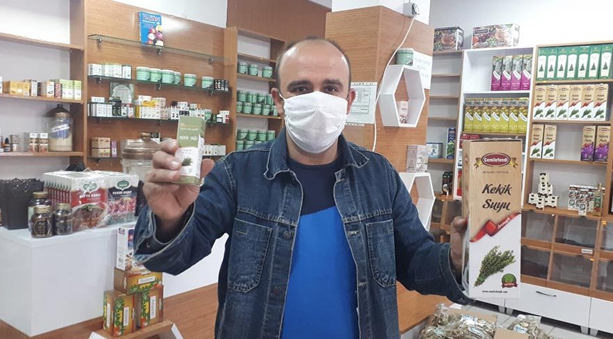 Bilecik'in Osmaneli ilçesinde aktarlık yapan Ersin Çimen, corona virüsü (Covid-19) salgını sonrası müşterilerini bir keçi boynuzu pekmezi ile kekik yağına ilgi gösterdiğini söyledi.