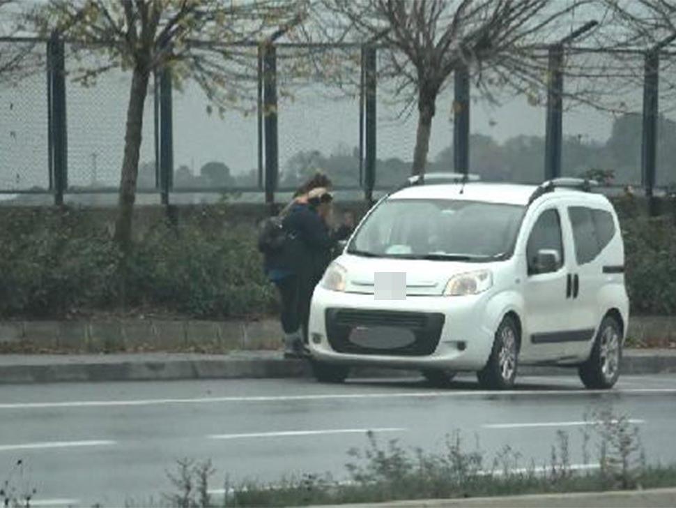 Görüntülerde yol kenarında bekleyen bir kadın, kendisiyle ilgilenen bir erkekle konuştuktan sonra kişinin aracına binerek uzaklaşıyor.